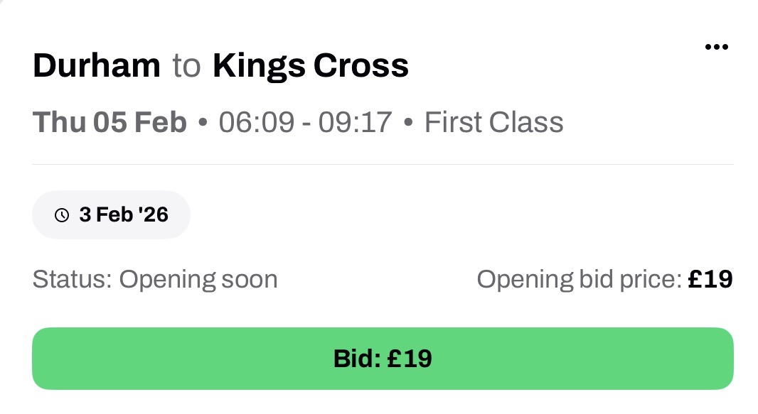 Auctions typically open between 48 and 24 hours before the train departs from its original station.