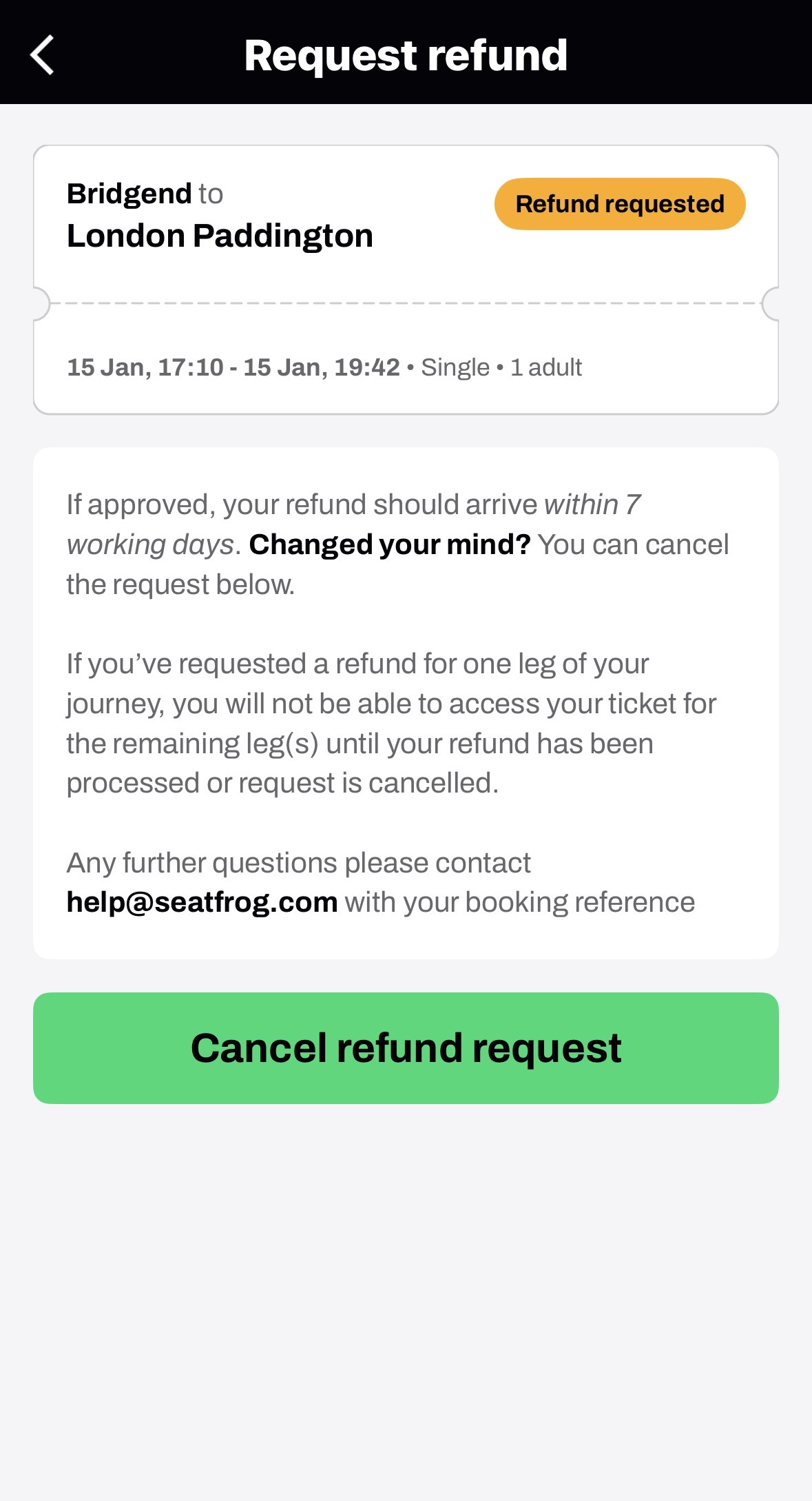 If you have requested a refund for flexible train tickets, your booking will be locked until the refund is processed or the request is cancelled. While the booking is locked, you won’t be able to access your ticket details.